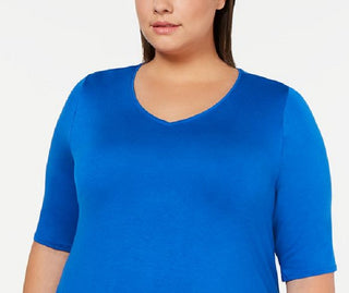Alfani Women's Plus V Neck Swing T-Shirt Blue Size 1X