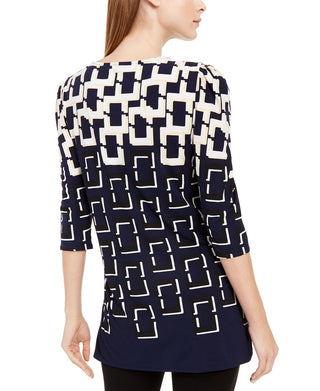 Alfani Women's Printed 3/4 Sleeve Top Navy Size XL