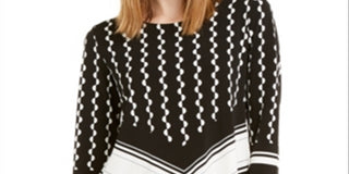 Alfani Women's Printed 3/4 Sleeve Crew Neck Evening Blouse Black Size Petite Small