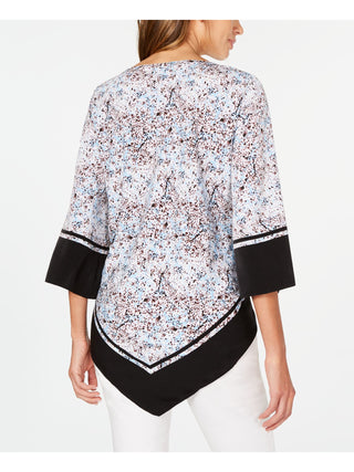 Alfani Women's Printed 3/4 Sleeve Jewel Neck Blouse Wear to Work Top Blue Size Petite Small