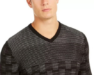 Alfani Men's Classic-Fit Metallic Check V-Neck Sweater Black Size X-Large