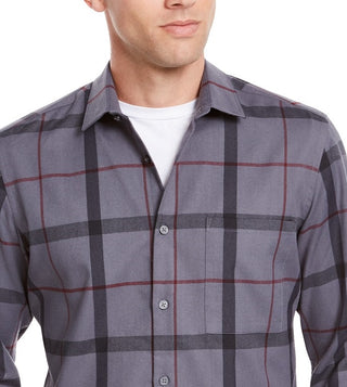 Alfani Men's Classic-Fit Brushed Plaid Shirt Port Size Small
