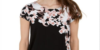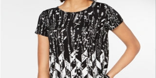 Alfani Women's Printed Round Hem T-Shirt Black Size Petite Small