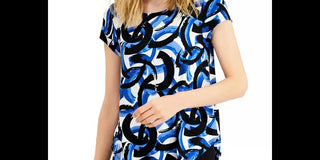 Alfani Women's Printed Round Hem T Shirt Blue Size -PS