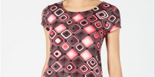 Alfani Women's Printed Round Hem T Shirt Red Size PM