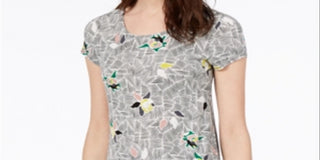 Alfani Women's Printed Round Hem T-Shirt Black Multi Size Petite S