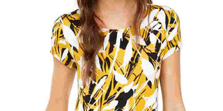 Alfani Women's Printed Round Hem T Shirt Yellow Size PL