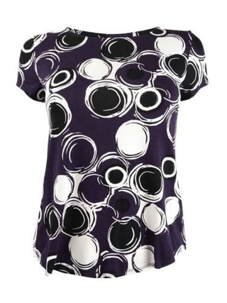 Alfani Women's Printed Round Hem T-Shirt Purple Size Petite XL