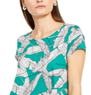 Alfani Women's Printed Round Hem T-Shirt Green Size Petite Small