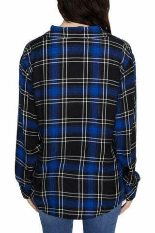 Sanctuary Women's New Generation Plaid Boyfriend Blouse Black Size L