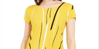 Alfani Women's Printed T-Shirt Wave City Yellow Size Small