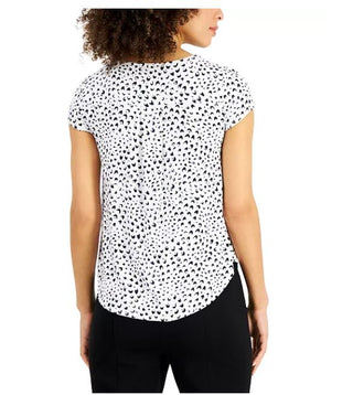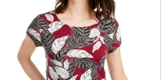 Alfani Women's Printed T-Shirt Wine- White Leaf Size Small