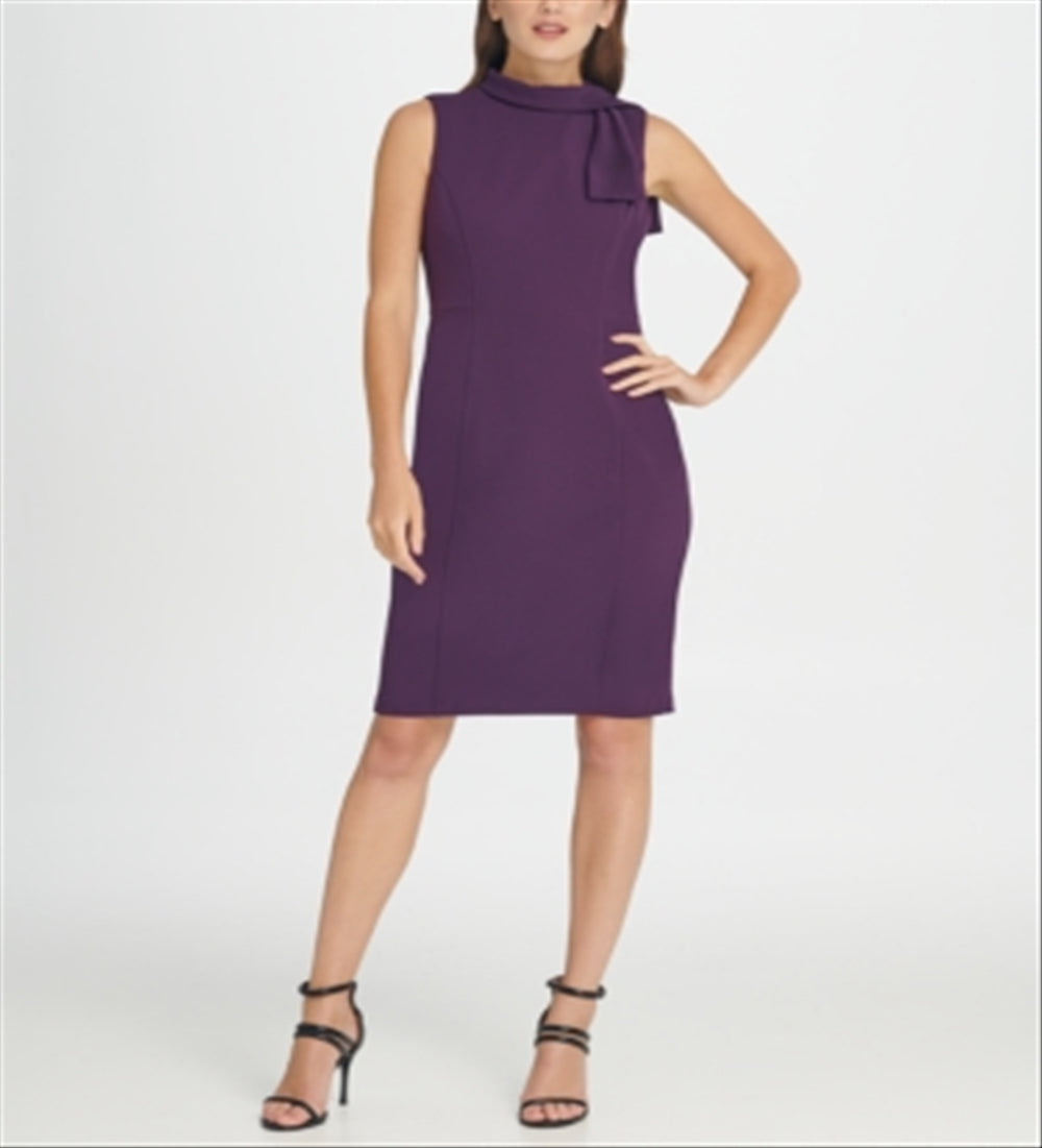 DKNY Women's Tie Neck Sheath Dress Purple Size 14
