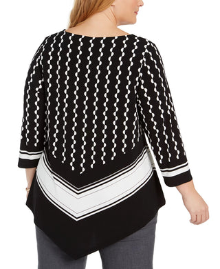 Alfani Women's Printed Two Tone Top Black Size Petite S