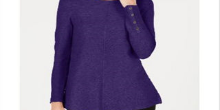 Alfani Women's Ribbed Snap Detail Sweater Purple Size Petite Small