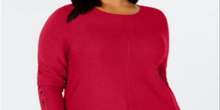 Alfani Women's Ribbed Snap Detail Sweater Red Size -2XL