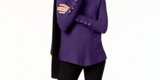 Alfani Women's Ribbed Snap Detail Sweater Purple Size Large