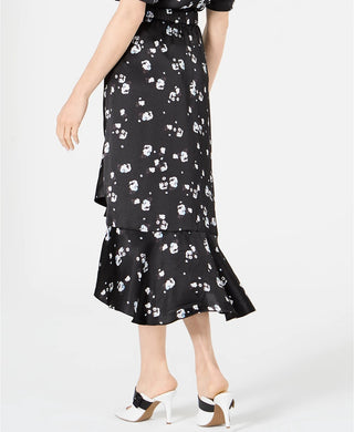 Alfani Women's Ruffled Floral Print Midi Skirt Black Size 12