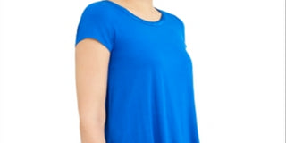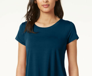 Alfani Women's Satin Trim High Low T-Shirt Blue Size Petite Small