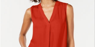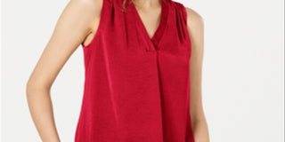 Alfani Women's Satin V Neck Tank Top Red Size Large