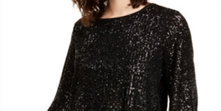 Alfani Women's Sequined Bell Sleeve Top Black Size Large