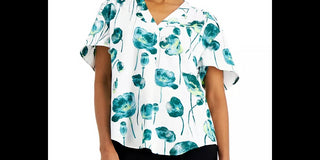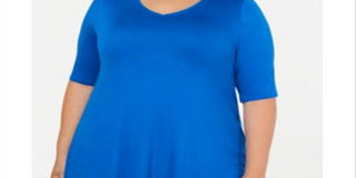 Alfani Women's Short Sleeve V Neck Tunic Top Blue Size 0X
