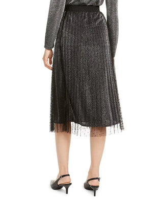 Alfani Women's Shutter Pleat Mesh Overlay MIDI Skirt Gray Size Medium
