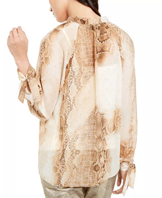 Alfani Women's Snake Embossed Tie Sleeve Top Beigekhaki Size Large
