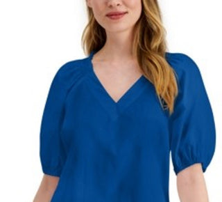 Alfani Women's Smocked-Shoulder Top Dark Blue Size XX Large