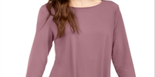Alfani Women's Solid Long Sleeve Crew Neck Trapeze Top Pink Size Large