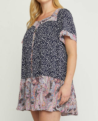Entro - Mixed Print Square Neck Dress - Plus