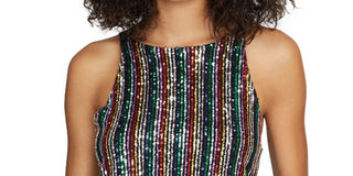 Sanctuary Women's Sequined Striped Spaghetti Strap V Neck Short Party Sheath Dress Black Size Medium