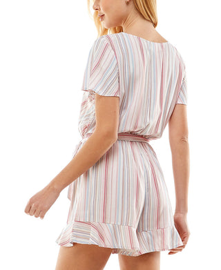 Bebop Junior's Striped Ruffle Hem Romper Pink Size Large
