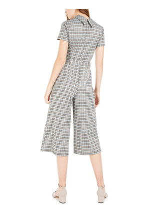 Bebop Women's Belted Plaid Short Sleeve Mock Jumpsuit Juniors Green Size Medium