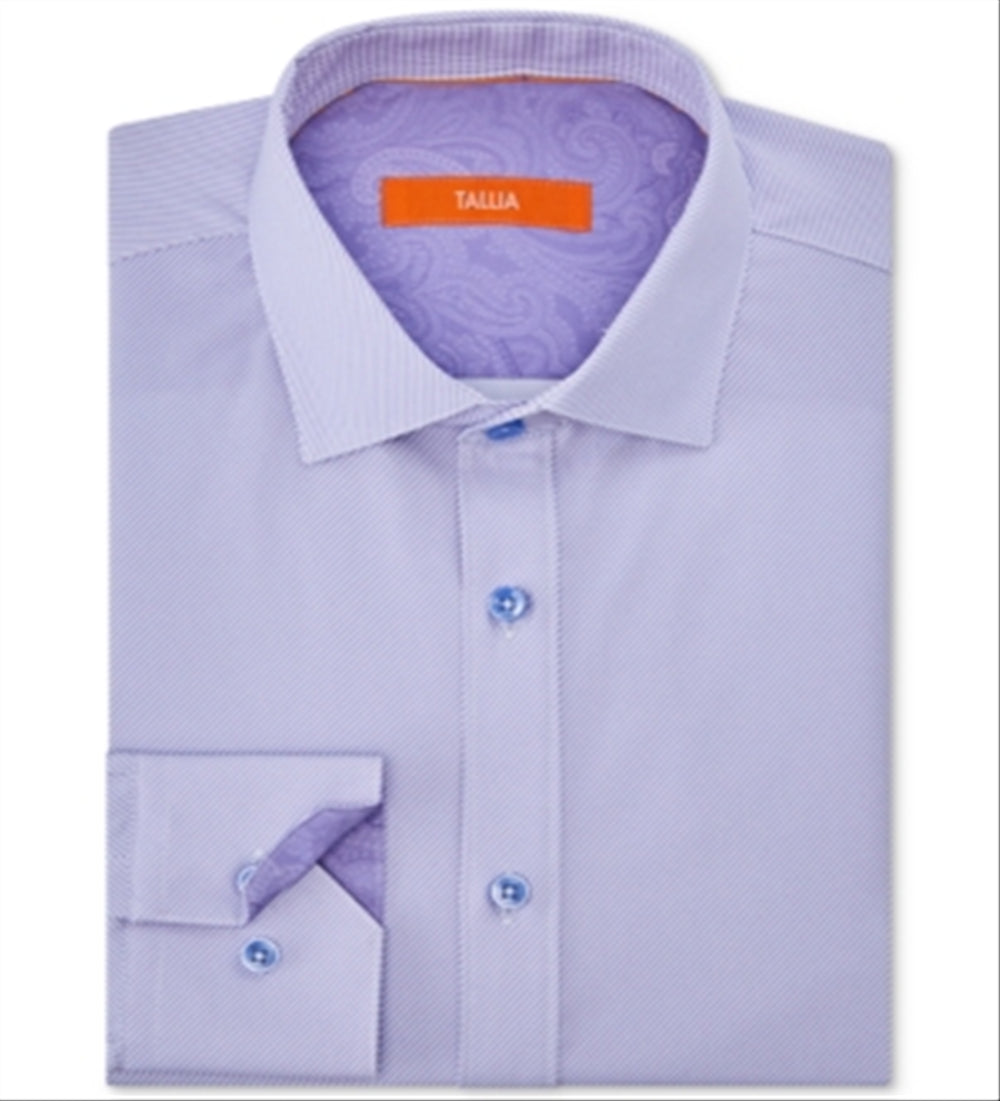 Tallia Men's Striped Collared Classic Fit Dress Shirt Purple Size 34-35