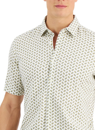Alfani Men's Geo Static-Print Shirt White Size Small