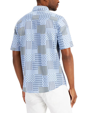 Alfani Men's Geometric Knit Back Short Sleeve Shirt Blue Size Small