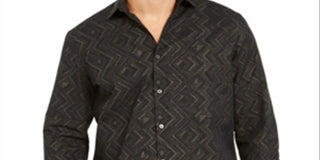 Alfani Men's Gold Button Down Jacquard Metallic Chevron Shirt Black Size X-Large