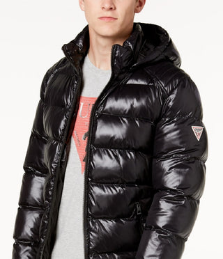 GUESS Men's Hooded Puffer Coat Black Size Medium