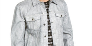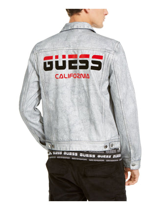 Guess Men's LargeL Denim Classic Slim Fit Logo Jacket Gray Size Size Large