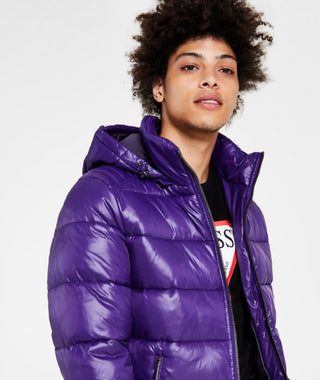 GUESS Men's Hooded Puffer Coat Purple Size X-Large