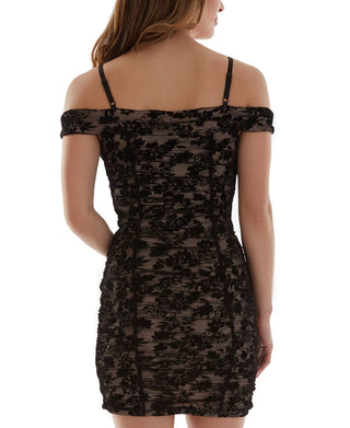 BCX Junior's Off The Shoulder Flocked Velvet Ruched Dress Black Size M