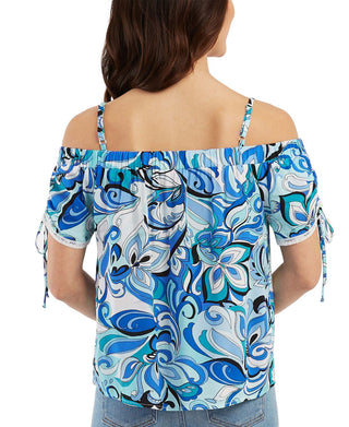 BCX Junior's Off The Shoulder Drawstring Sleeve Top Blue Size X-Small