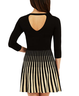 BCX Junior's Open Back Fit & Flare Sweater Dress Black- Gold Size X-Large