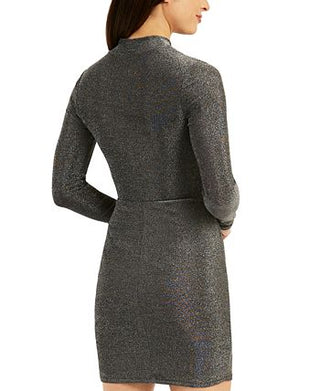 BCX Junior's Metallic Ruched Tulip Hem Mock Neck Dress Grey Size Large