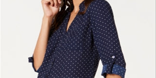 BCX Junior's Printed Button up Shirt Dark Blue Size Medium