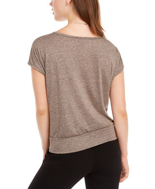 BCX Junior's Lattice Sleeve Top Brown Size Medium