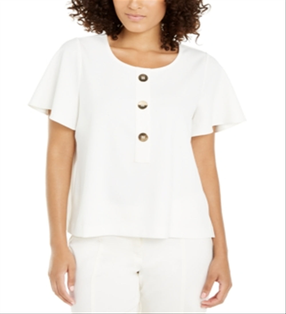 Alfani Women's Cinched Front Pullover Blouse White Size XL