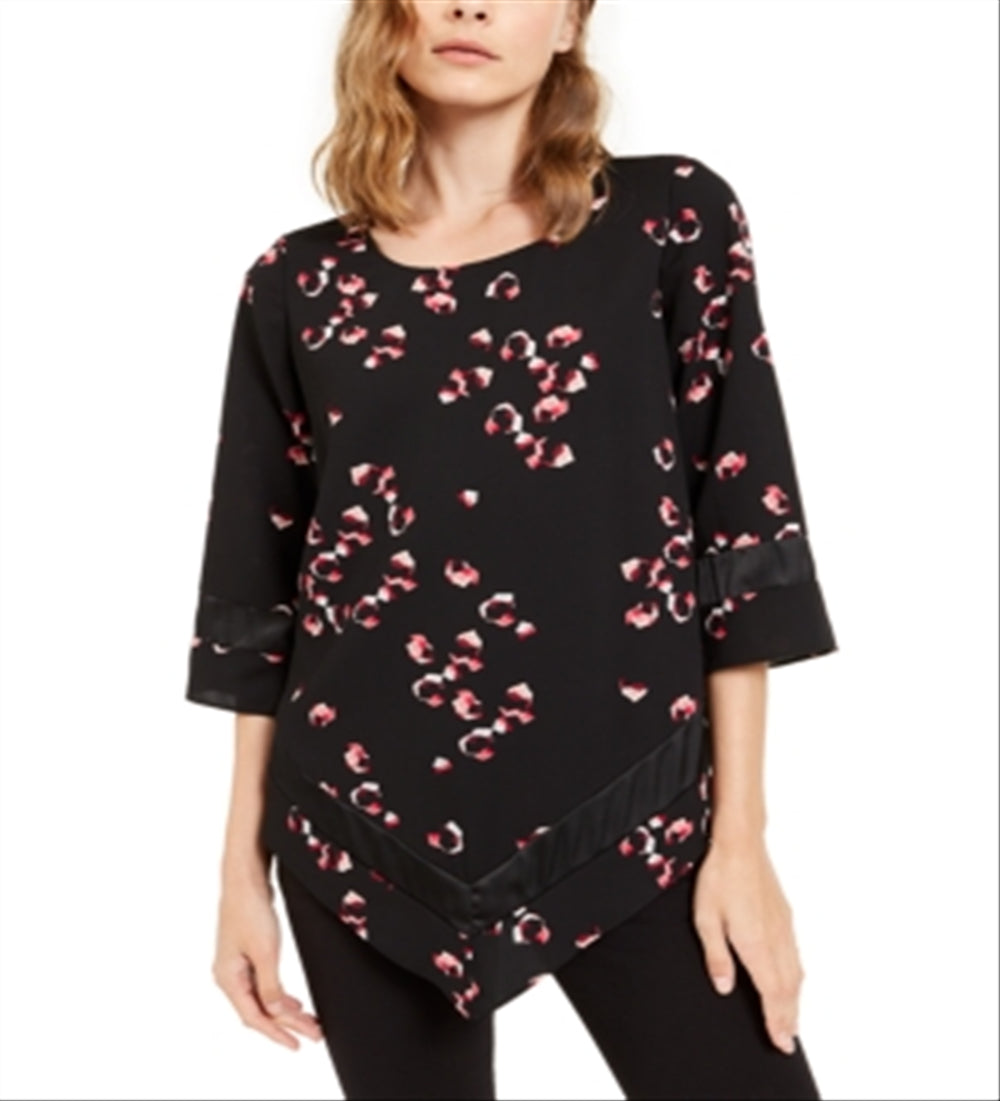 Alfani Women's Chevron V Hem Blouse Black Size Petite S