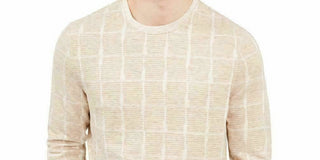 Alfani Men's Jacquard Grid Pullover Crewneck Sweater Beige Size 3XL